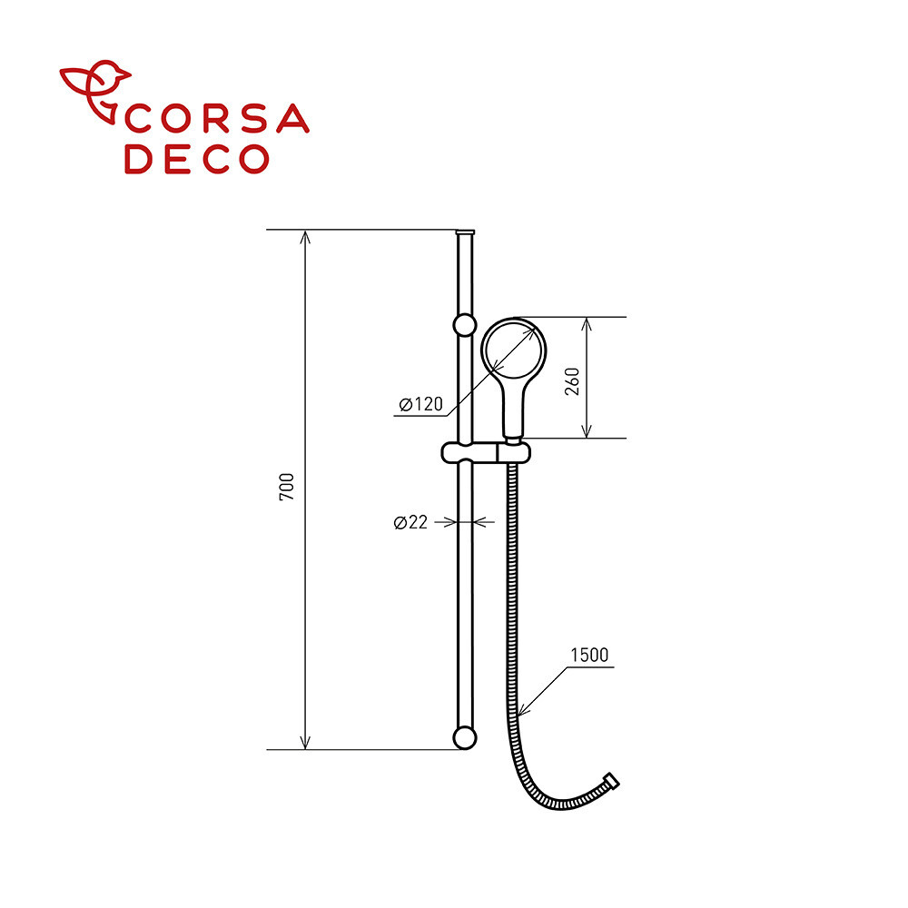 Душевой комплект Corsa Deco FX со шлангом со стойкой хром (SSETFX120S)