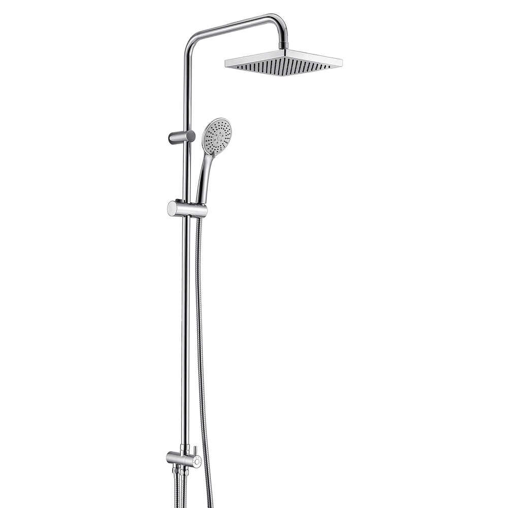 Комплектация: Душевая насадка 200х200 мм (144 форсунки, ABS-пластик)- 1шт, Стойка для душа, Ø 20мм- 1 шт., Лейка 3-функциональная с системой защиты от известковых отложений — 1 шт., Шланг металлический 1500 мм (подключение к лейке) — 1шт., Шланг металлический 600 мм (подключение к смесителю) — 1 шт., Керамический поворотный переключатель — 1 шт., Регулируемый держатель лейки — 1 шт., Набор для монтажа — 1 шт.