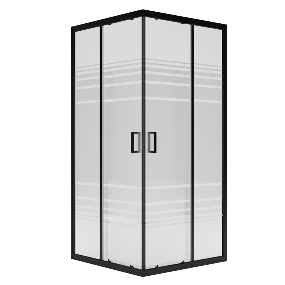 Душевое ограждение имеет квадратную форму. Оно выполнено из закаленного стекла толщиной 6 мм и алюминиевого профиля. Двери фиксируются магнитным смыканием. Ширина открытия проема 480 мм. Стоечный профиль обеспечивает сохранение геометрии (не дает прогнуться направляющим под весом дверей), снимает нагрузку со стекла и увеличивает общую жесткость. Установочный профиль дает возможность регулировки размера ограждения (+10 мм).