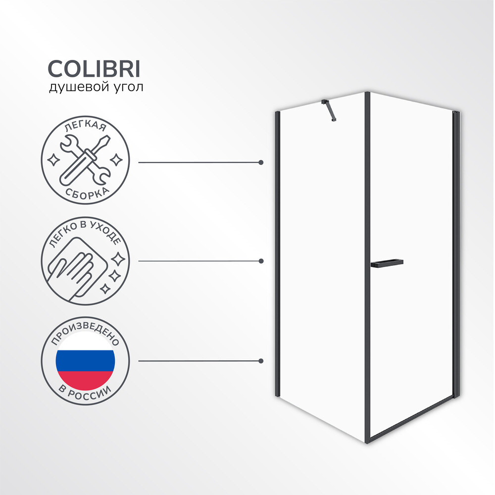 Душевой уголок Ulitka Colibri черный 90х90х195 см квадрат стекло прозрачное 6 мм (74104460)