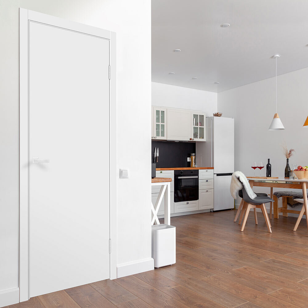 Дверь межкомнатная Smart 745х2050 мм эмаль белая глухая с притвором