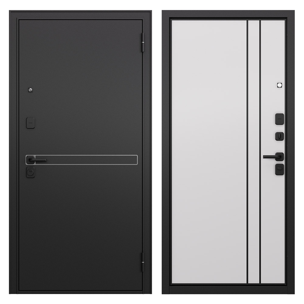 Дверь входная Mastino Райд правая черный муар металлик — белый софт 960х2050 мм