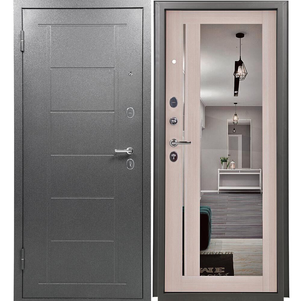 Дверь входная Промет Титан левая букле графит — беленый дуб с зеркалом 860х2050 мм