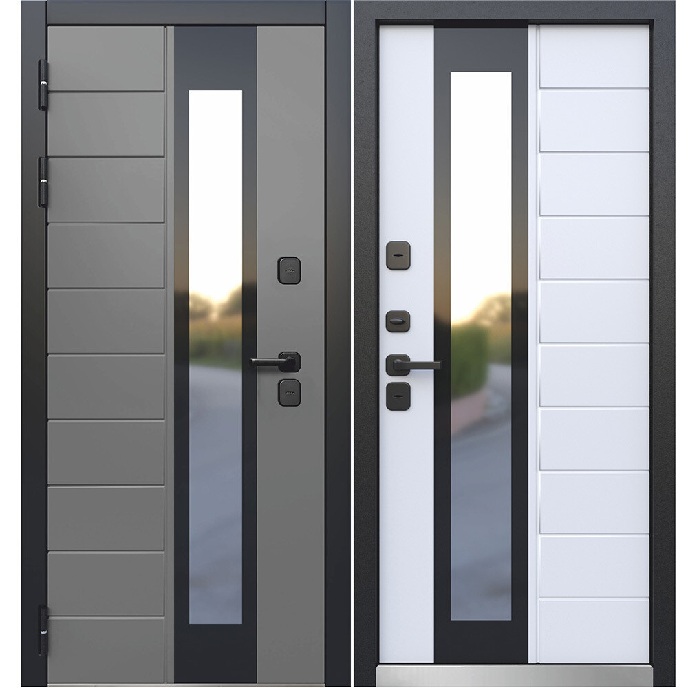 Дверь входная Ferroni Luxor Termo 5 860 мм левая предназначена для установки в качестве уличной входной двери в домах, коттеджах, таунхаусах. Полотно изготовлено из стали. С внешней стороны облицовано фрезерованной МДФ-панелью толщиной 12 мм, цвет «Эмаль серая». С внутренней стороны облицовано фрезерованной МДФ-панелью толщиной 10 мм, цвет «Эмалит белый». Анкерные болты в комплект не входят и приобретаются отдельно. Диаметр отверстий под анкер — 25 мм. Длина анкера подбирается под тип стены.