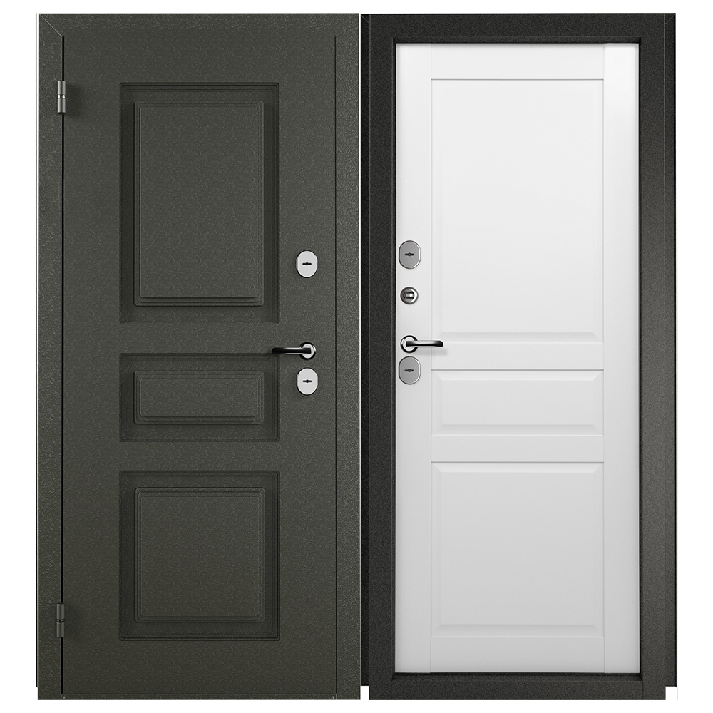 Дверь входная с терморазрывом Промет Норд левая букле графит — нубук белый 880х2050 мм