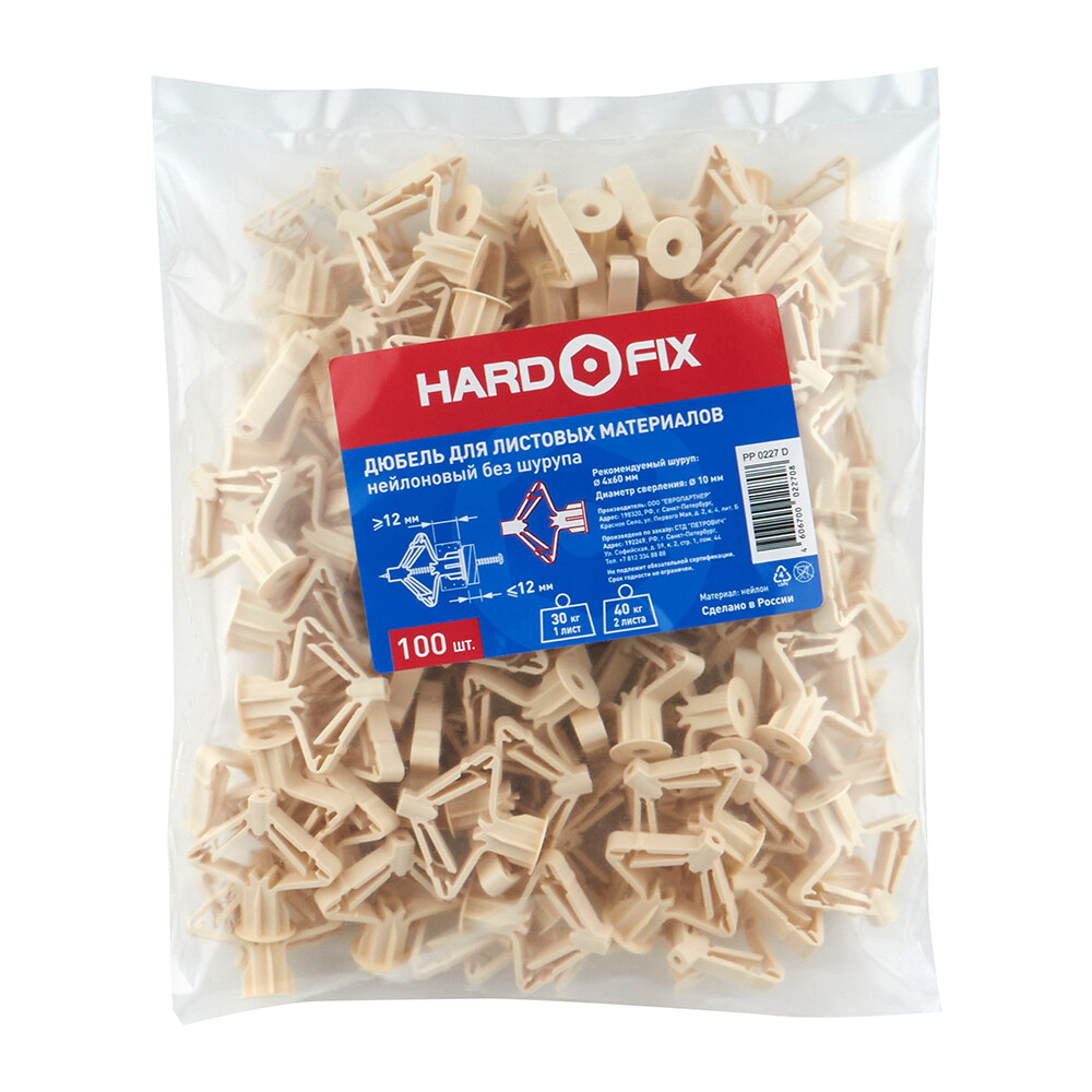 Дюбель для листовых материалов Hard-Fix PLA 4×60 мм нейлон (100 шт.)