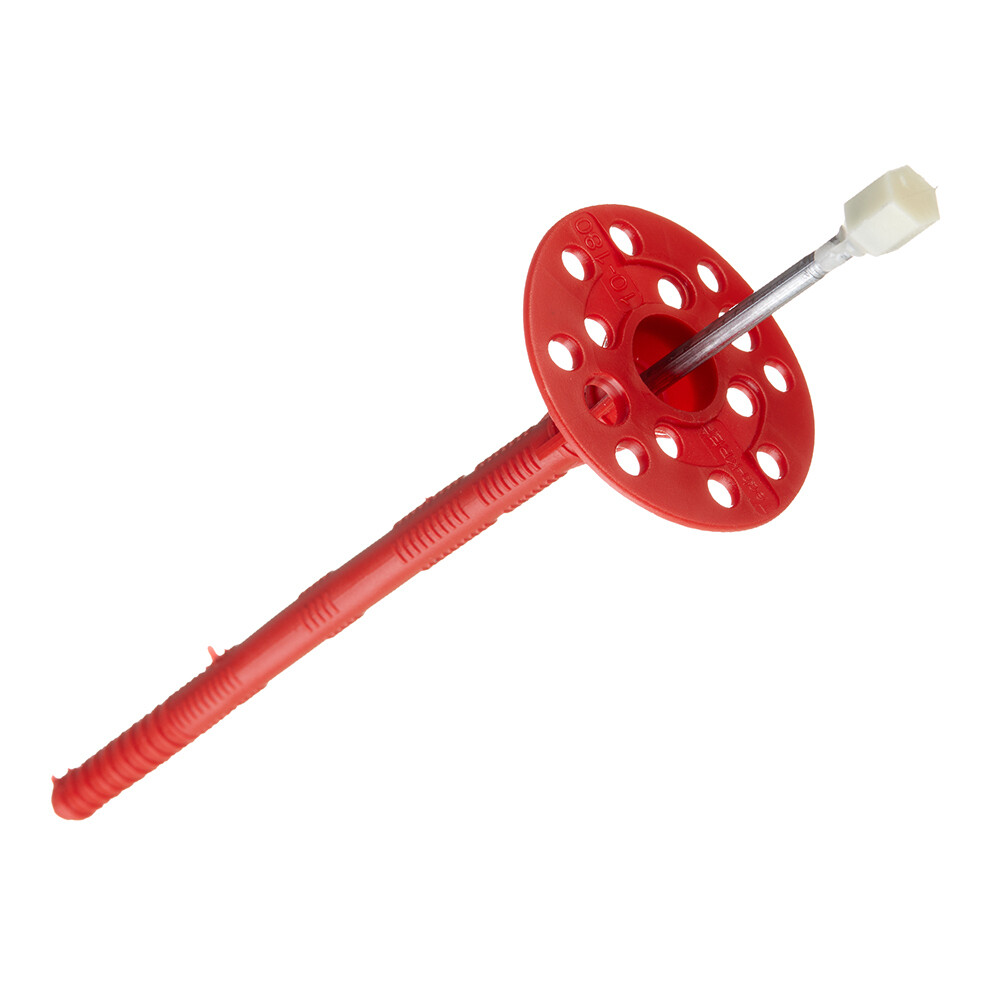 Предназначен для крепления теплоизоляционных изделий к внутренним и наружным поверхностям зданий, различного назначения, в том числе в системах вентилируемых фасадов, штукатурных фасадах, колодезной кладке. В такие основания, как тяжелый и легкий бетон, полнотелый керамический и силикатный кирпич, керамзитобетонный блок, пустотелый керамический и силикатный кирпич, блоки полнотелые из легкого бетона, ячеистый бетон (газобетон), без ограничения по высоте. За счет широкой шляпки дюбель часто называют «парашют» или тарельчатый дюбель. Конструкция широкой шляпки дюбеля плотно прижимает теплоизоляцию, отверстия позволяют утопить дюбель в клее без потери эластичности шляпки. В комплекте с дюбелем поставляется металлический оцинкованный гвоздь с термоголовкой, который имеет пластиковый колпачок, предотвращающий образование «мостика холода» и ко…