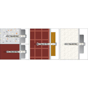 Фасадные дюбели предназначены для сквозного монтажа как в полнотелых, так и пустотелых (пористых, щелевых, поризованных) материалах. Благодаря свей конструкции и качественному нейлоновому дюбелю, анкер идеально подходит для крепления в неизвестный или неплотный материал основания. Дюбель оснащен шестигранной головкой и шлицем TORX, что позволяет производить установку разных условиях монтажа. Пластиковая пресс-шайба на самом дюбеле является терморазрывом между металлическим шурупом и прикрепляемой деталью.