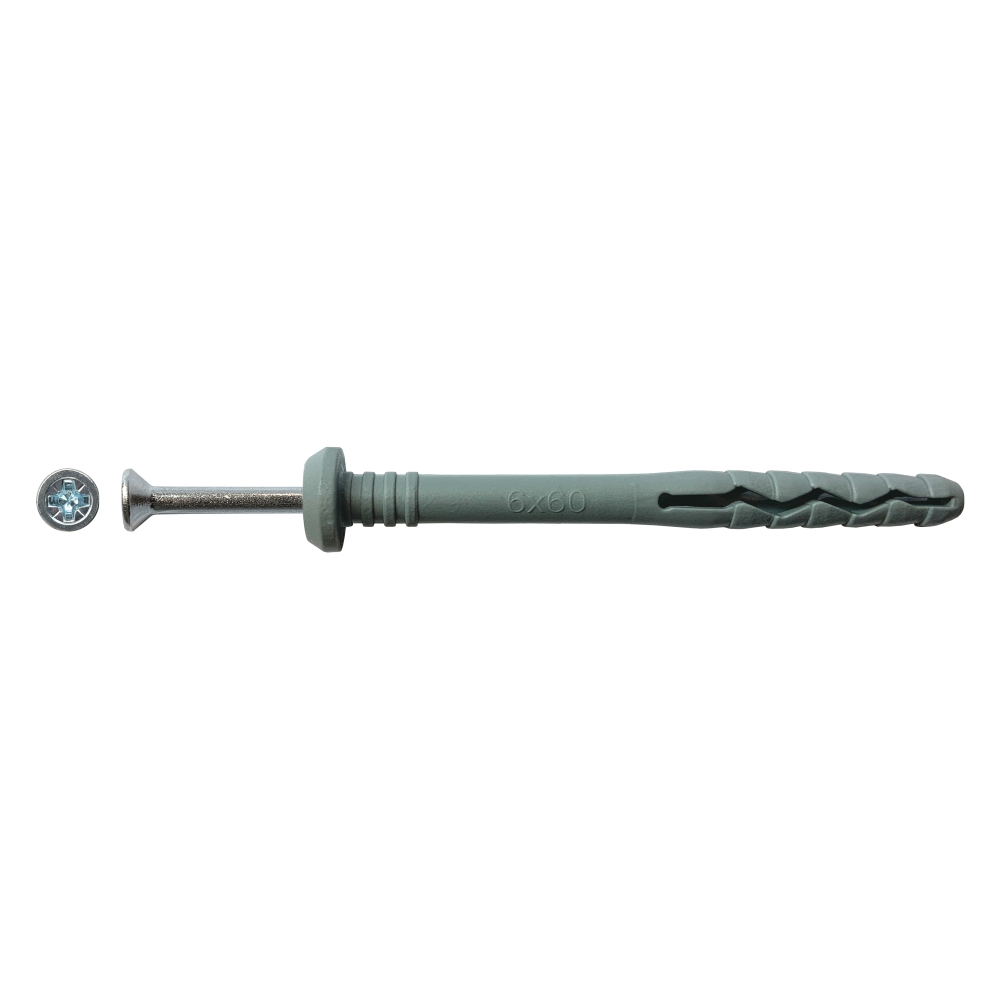 Предназначен для крепления в бетон, керамический полнотелый кирпич, ячеистый бетон, клинкерный кирпич и натуральный камень. Поставляется в комплекте со стальным гвоздеобразный шурупом (крестообразным шлицом), шлиц которого позволяет демонтировать закрепляемую деталь без нарушения внешнего вида крепления.