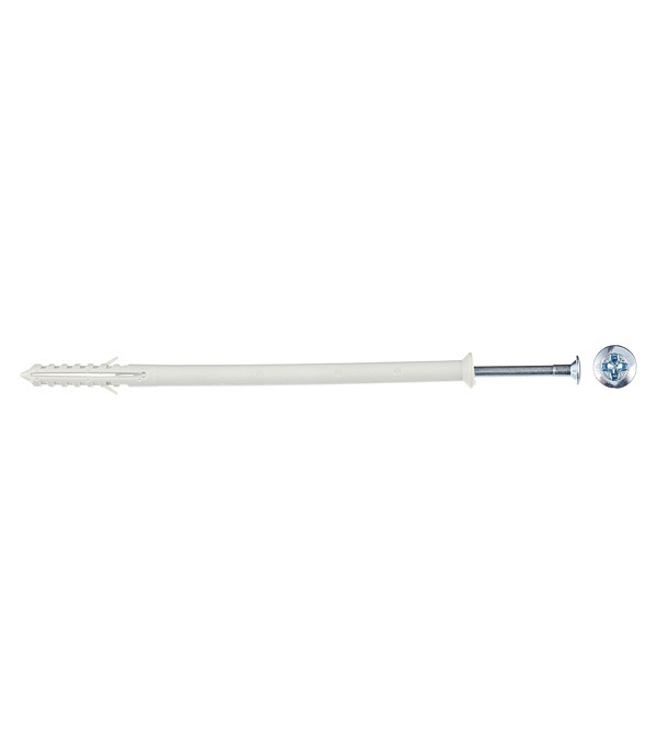 Нейлон обеспечивает надежное сцепление с материалом основания. Резьбовой оцинкованный гвоздь повышенной прочности заранее установлен в дюбель.