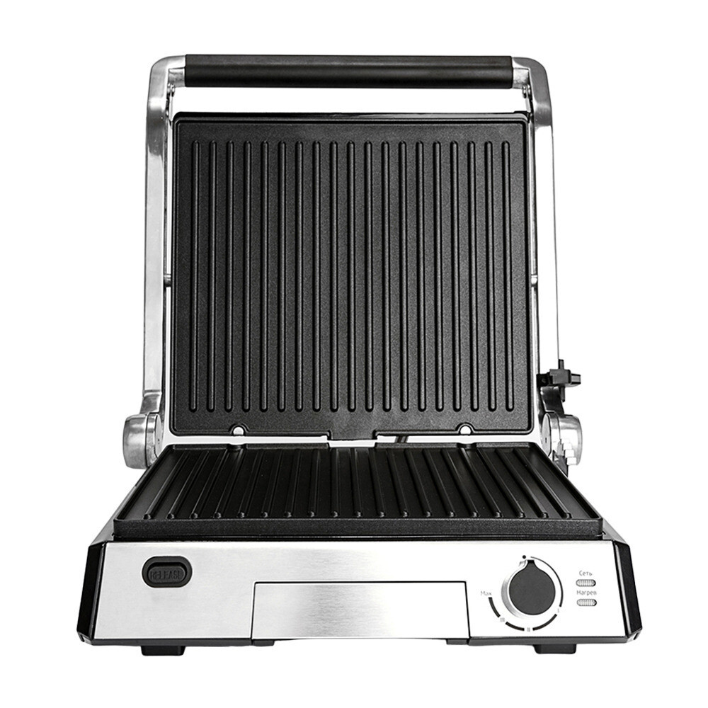 Гриль оснащен термостатом с плавной регулировкой, позволяющим выставить температуру вплоть до 230 °С