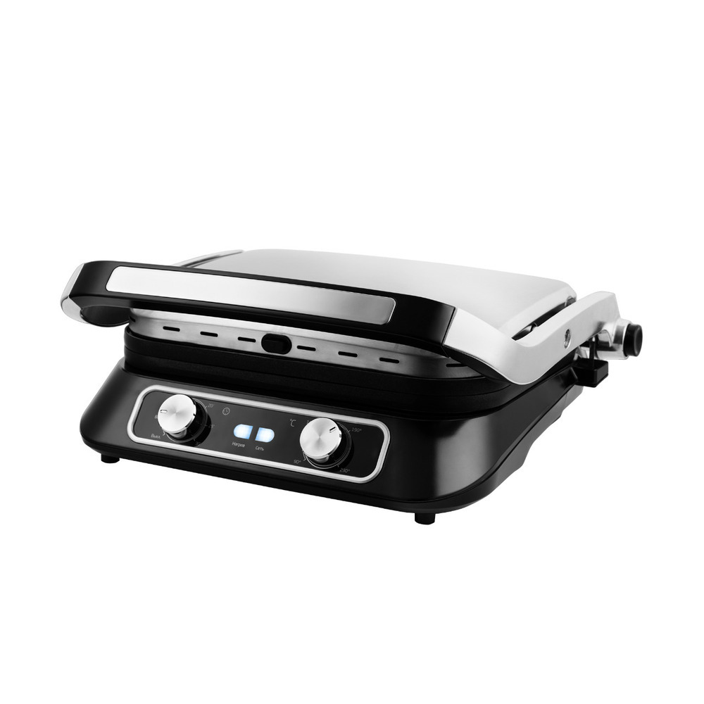 В одностороннем режиме крышка гриля откидывается на 180 °, и гриль превращается в большую жаровню. Для приготовления можно использовать обе поверхности.