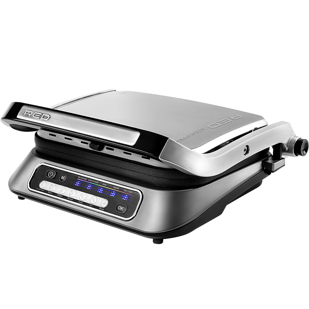 Гриль RED solution SteakPRO RGM-M805 – универсальное устройство 3 в 1, объединяющее функции гриля, духовки и барбекю. Управление интуитивно, возможно выбрать 1 из 7 автоматических программ. Прибор сам определит толщину стейка за счет инновационной технологии, световой индикатор подскажет, когда мясо достигнет нужной прожарки. А с антипригарным покрытием не понадобится использовать масло. Гриль легко очистить после использования за счет наклона съемных панелей и специального поддона.