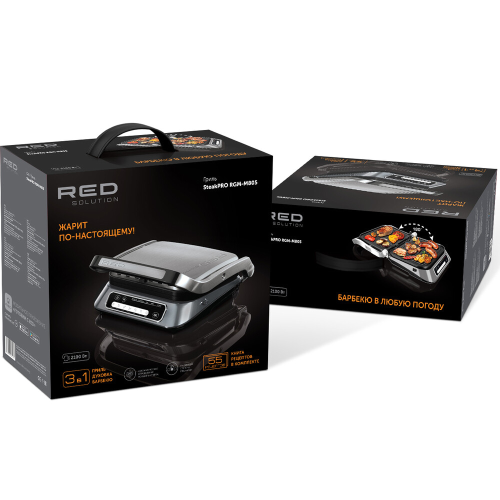 Гриль RED solution SteakPRO RGM-M805 – универсальное устройство 3 в 1, объединяющее функции гриля, духовки и барбекю. Управление интуитивно, возможно выбрать 1 из 7 автоматических программ.
