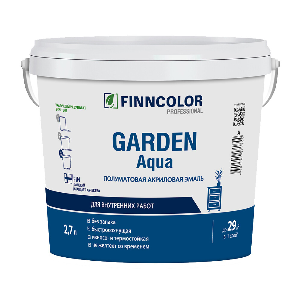 Эмаль акриловая Finncolor Garden Aqua основа А белая полуматовая 2,7 л