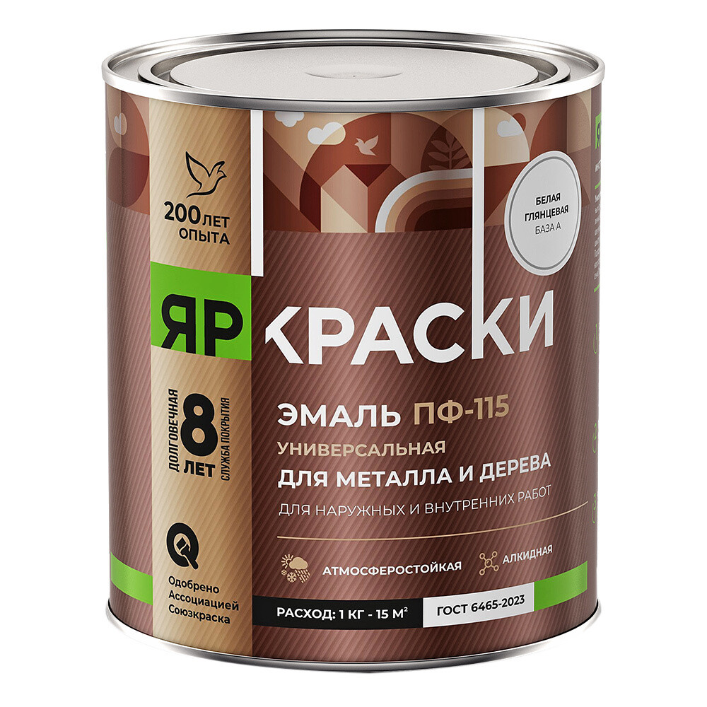 Эмаль ПФ-115 алкидная Ярославские краски ПФ-115 белая база А глянцевая 0,9 кг