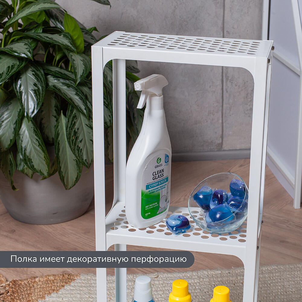 На все металлические элементы полки нанесено покрытие, защищающее их от коррозии металла, поэтому она не боится влаги и отлично подходит для помещений с повышенной влажностью.