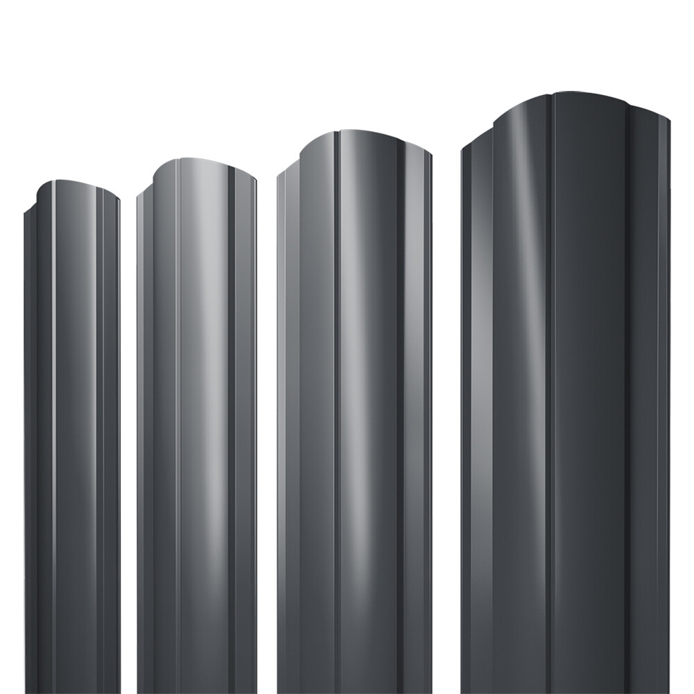 Евроштакетник односторонний круглый 0,45 мм 128х1800 мм графитовый серый RAL 7024 фигурный срез