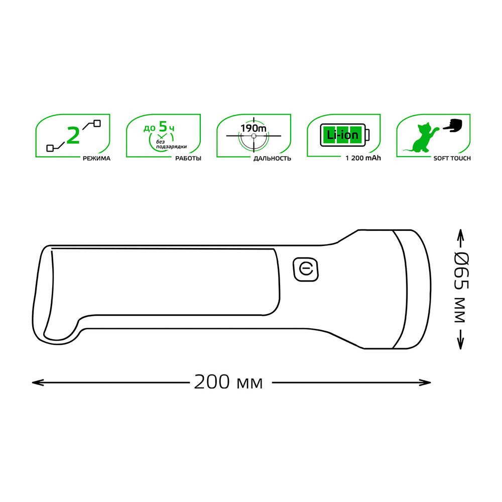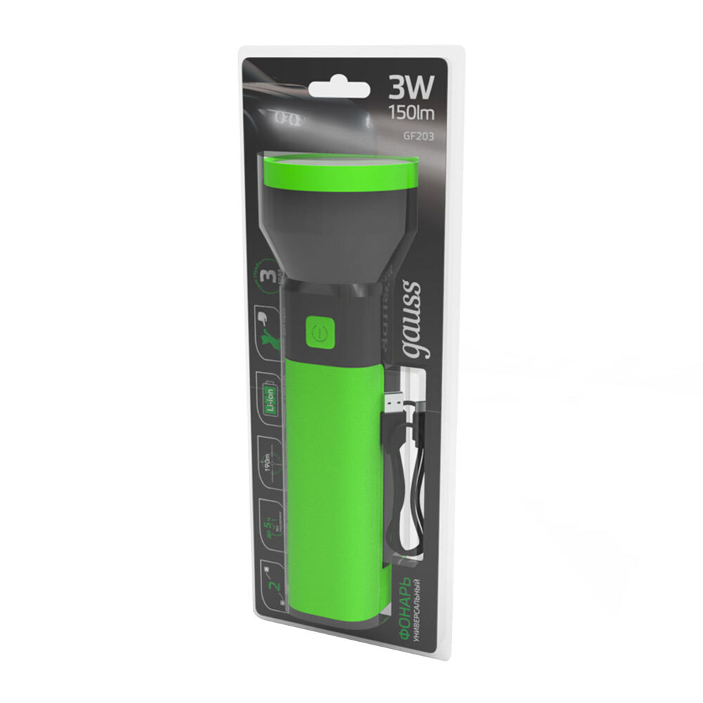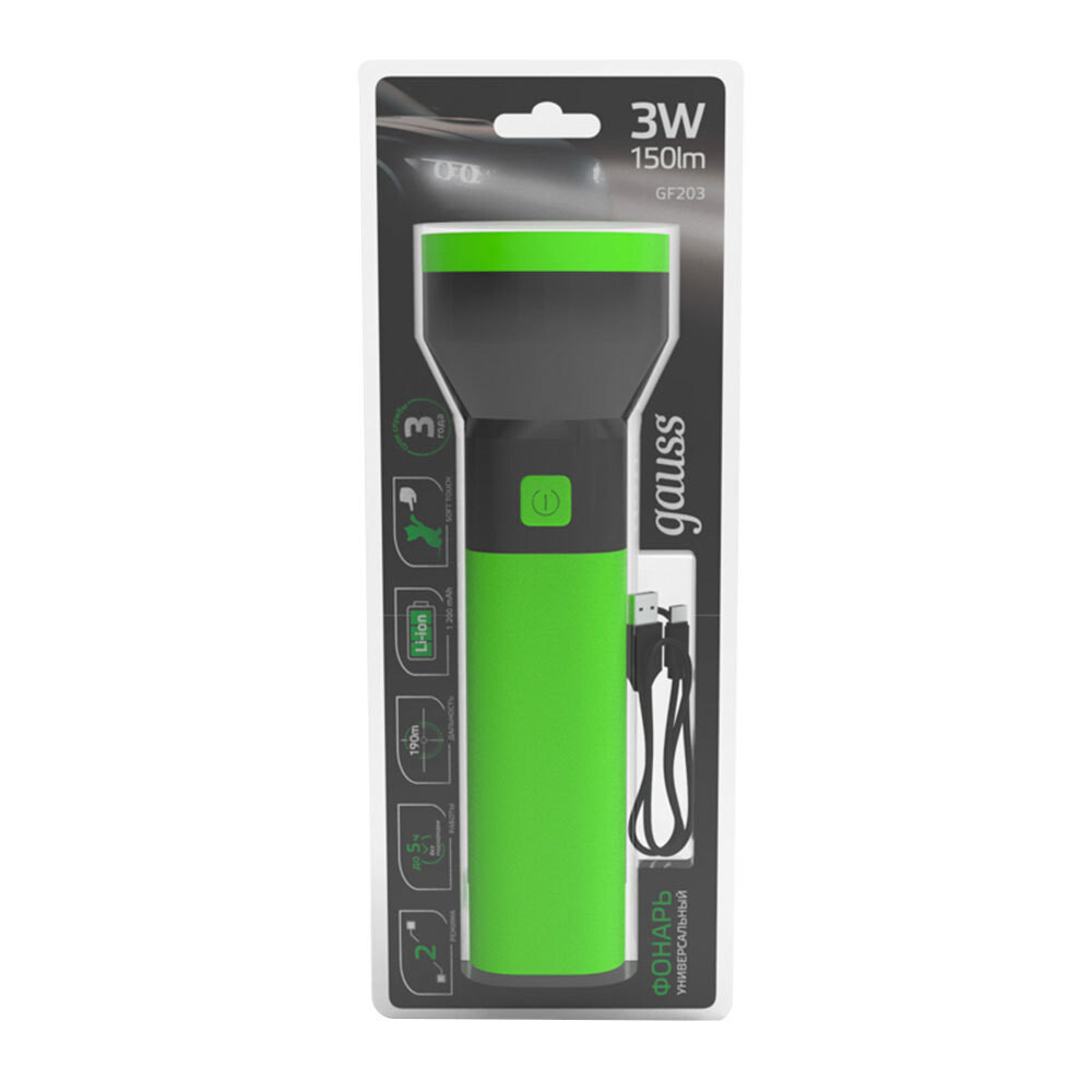Фонарь ручной Gauss светодиодный 2 LED 3 Вт аккумуляторный Li-Ion 1200 мАч пластик 2 режима (GF203)