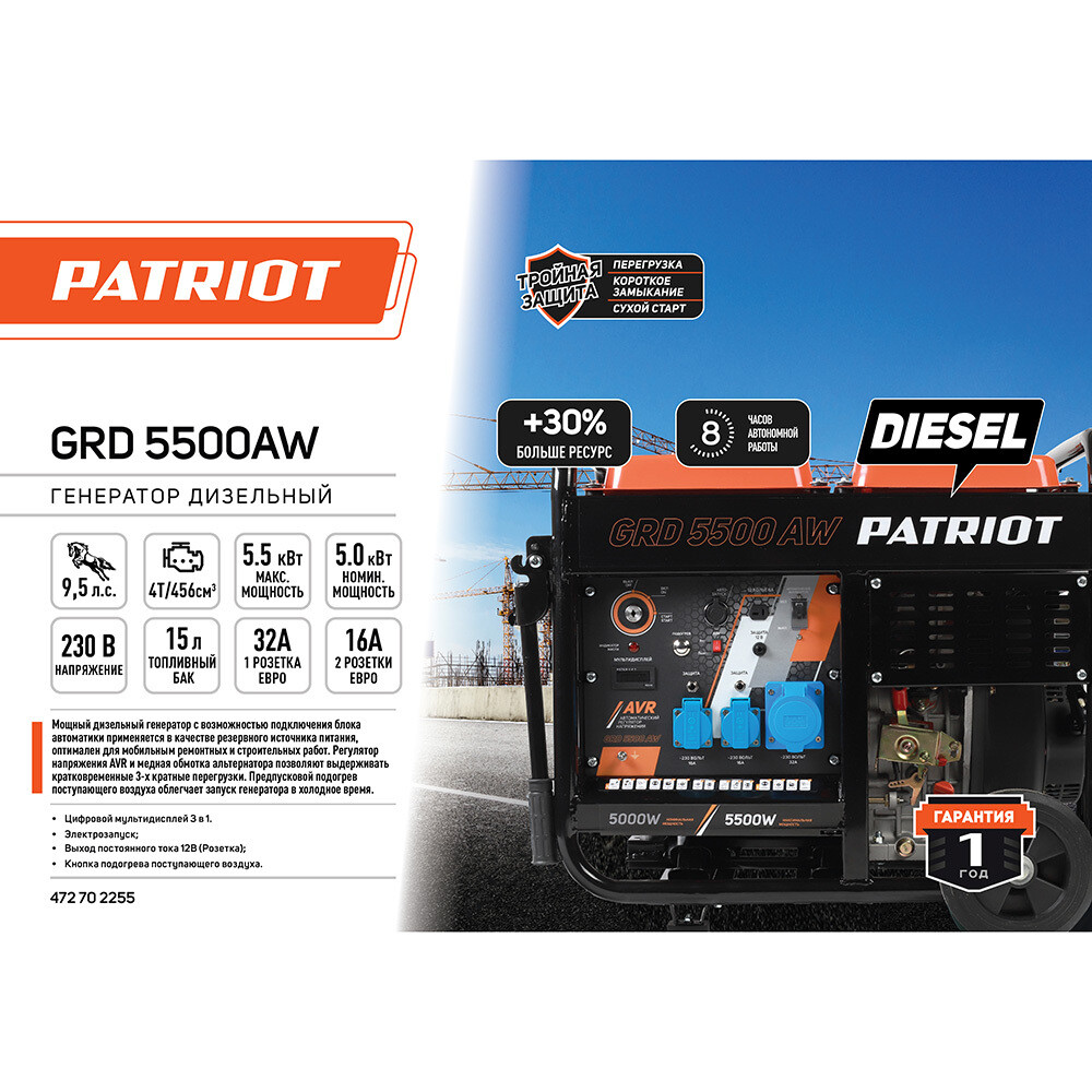 Генератор дизельный Patriot GRD 5500AW 5 кВт с электростартером (472702255)