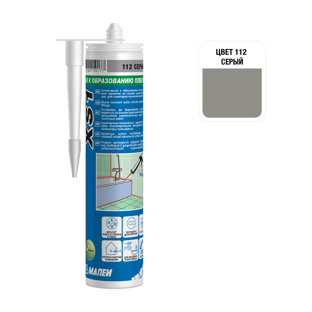 Герметик силиконовый санитарный Мапеи XS1 серый 300 мл