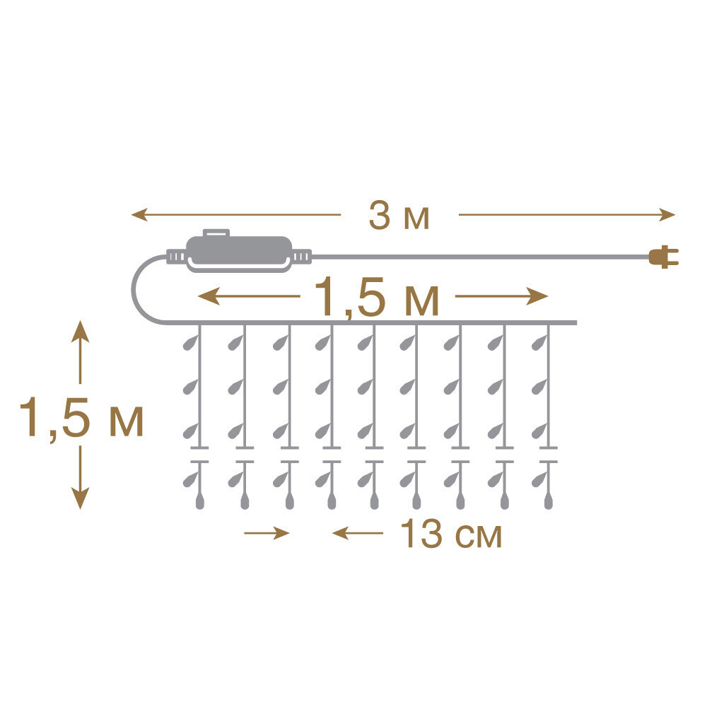 Электрогирлянда – это красивое и эффектное украшение для любого праздника или вечеринки. Состоящая из 156 LED ламп на прозрачном проводе, она создаст уютную и теплую атмосферу в любом помещении. Длина гирлянды составляет 1,5х1,5 метра. Гирлянда оснащена 8 режимами мигания, что позволяет выбрать наилучший вариант для вашего вечера. Цвет свечения – холодный. Срок службы 25 000 часов.