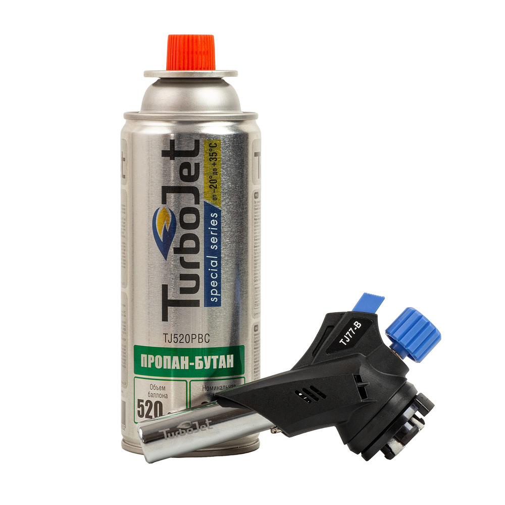 Комплектация: горелка TJ77-B и баллон TJ520PBС с газом пропан-бутан.