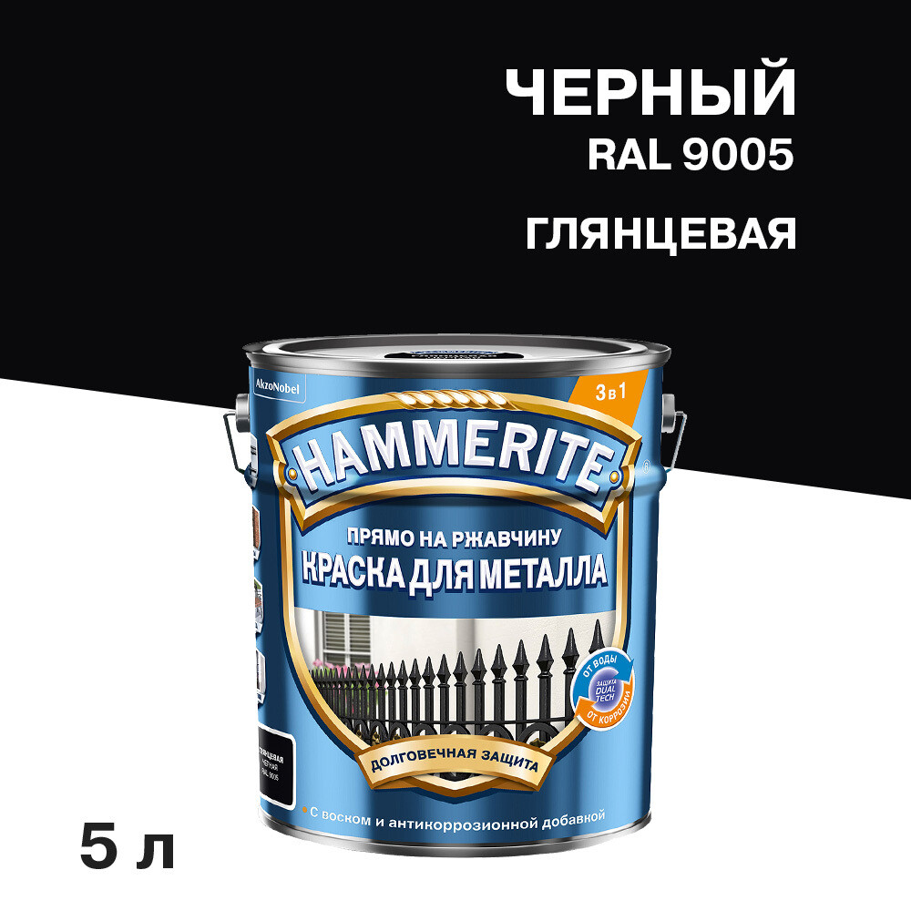 Грунт-эмаль по ржавчине 3в1 Hammerite черная RAL 9005 гладкая глянцевая 5 л
