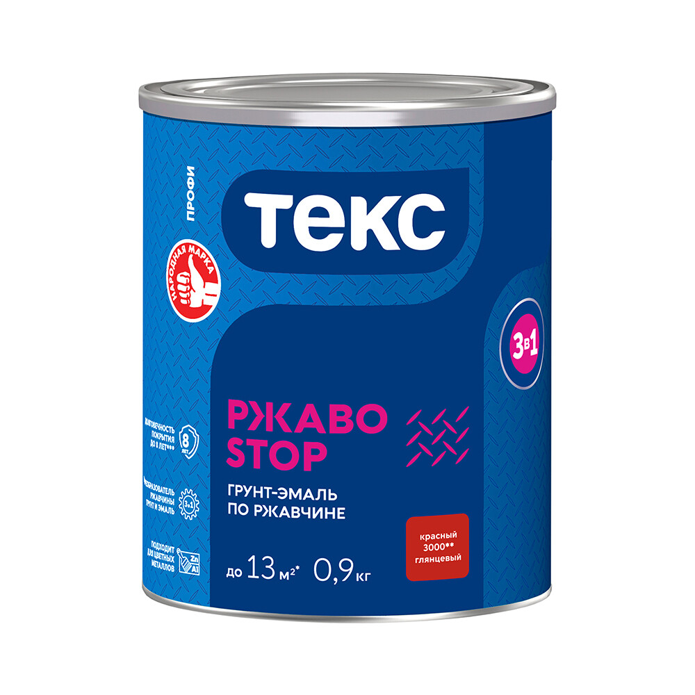 Грунт-эмаль по ржавчине 3в1 Текс РжавоStop красная глянцевая 0,9 кг