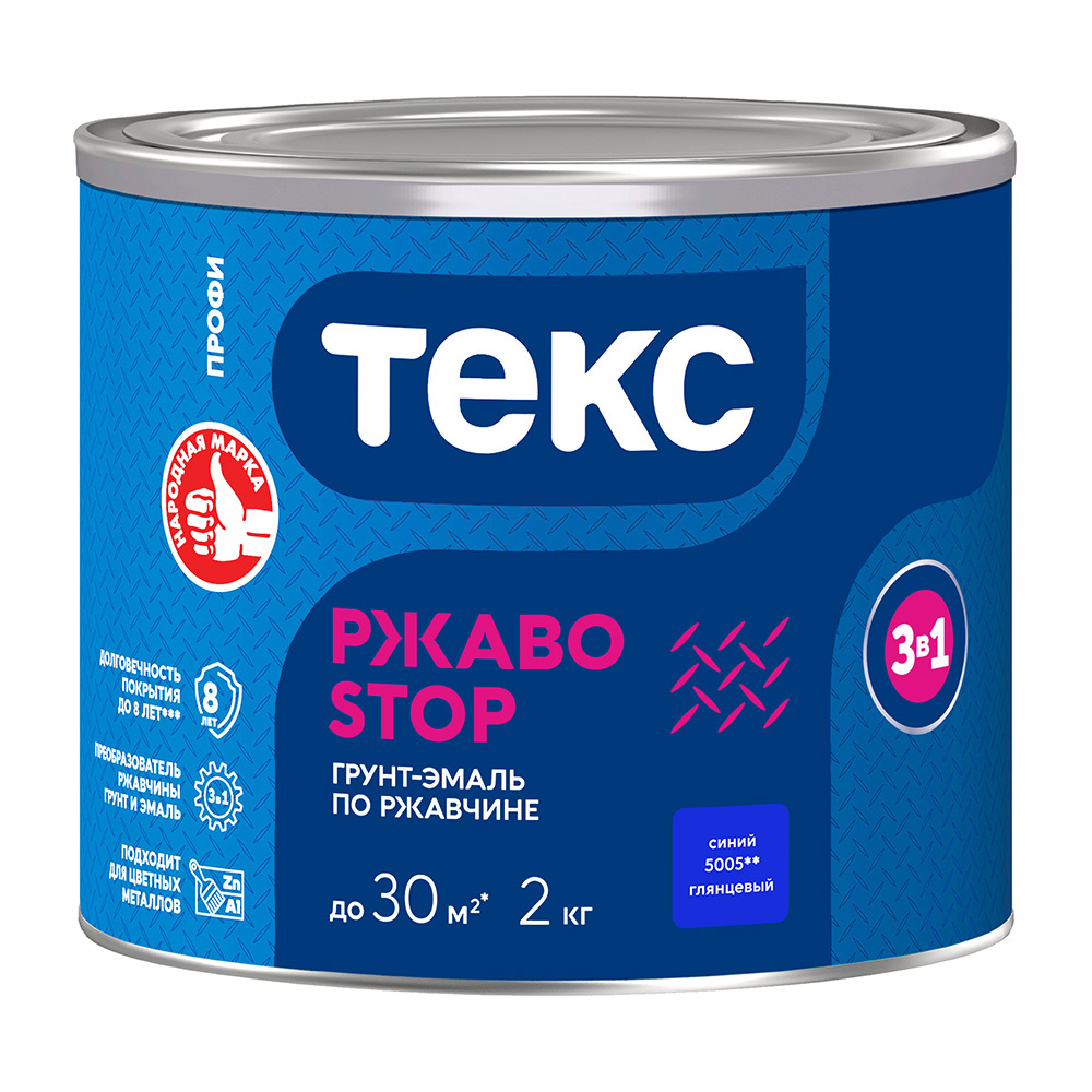Грунт-эмаль по ржавчине 3в1 Текс РжавоStop синяя глянцевая 2 кг