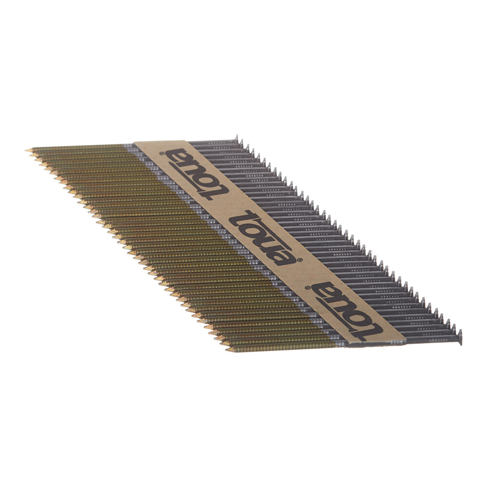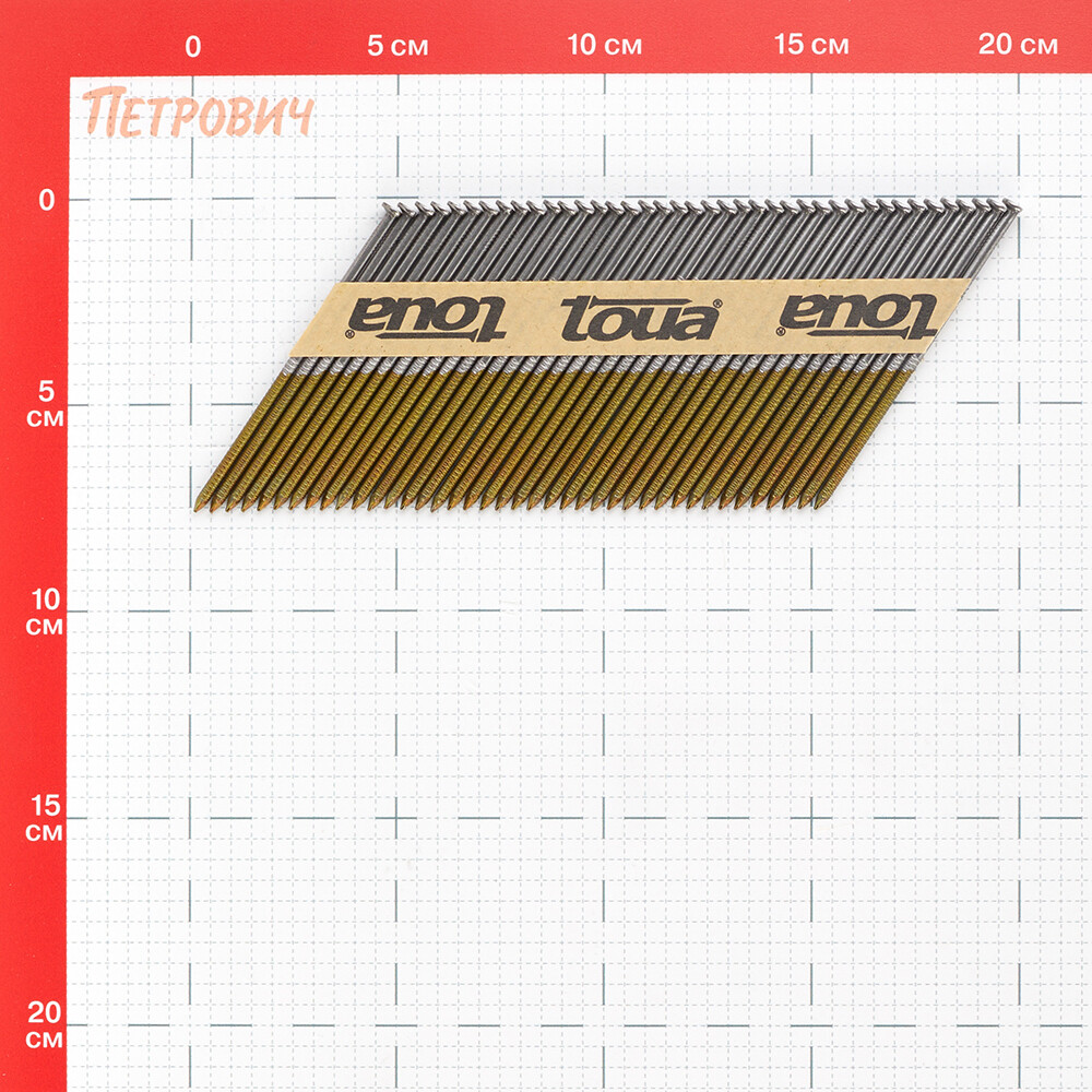 Особенностью реечных гвоздей Toua является точное соблюдение шага между гвоздями в кассете, что позволяет поршню при забивании гвоздя не задевать шляпку соседнего гвоздя и продлевает срок жизни поршня на реечном нейлере с углом наклона магазина 30-34 градуса.