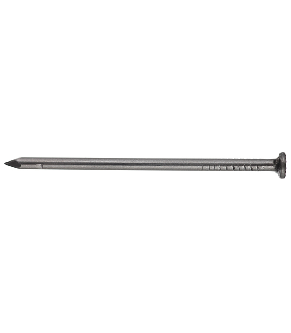 Гвоздь представляет собой длинный и прямой стержень с небольшими неровностями рядом со шляпкой, что улучшает качество соединения.
