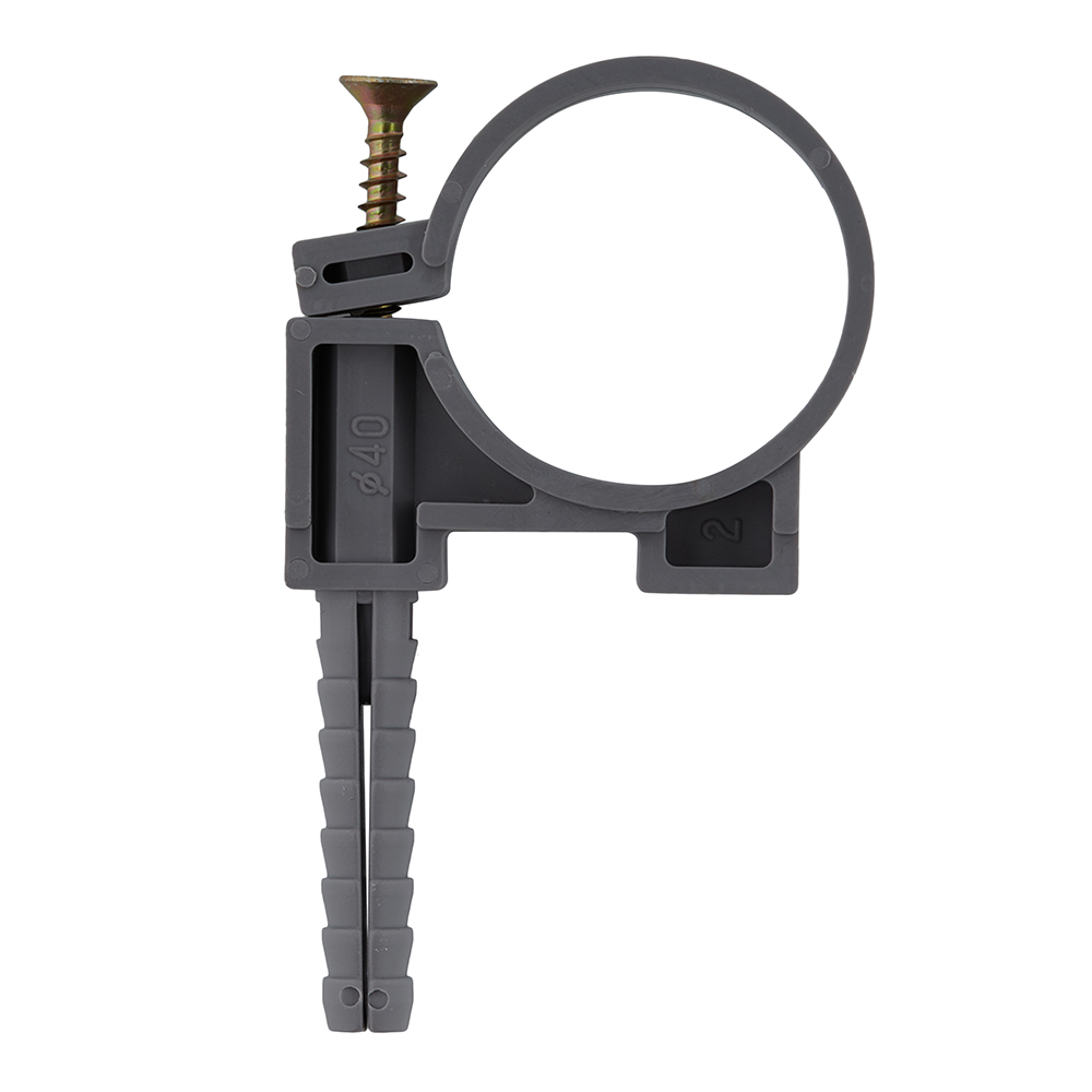 Хомут сантехнический 40-42 мм пластик с дюбелем для крепления трубы (2 шт.)