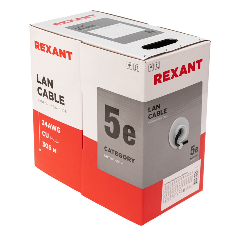 Интернет-кабель (витая пара) UTP 4PR CAT5e 4х2х0,51 мм Rexant (305 м)
