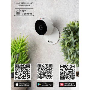 Предназначена для видеонаблюдения за домом или квартирой, а также для присмотра за детьми или питомцами. Можно в любой момент посмотреть картинку с камеры в приложении EKF Connect для Android и iOS.
