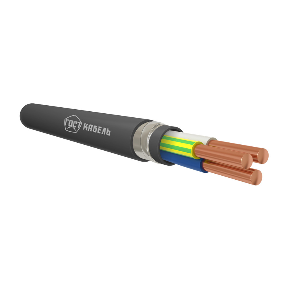 Кабель с медными жилами, с изоляцией из ПВХ пластиката, бронированный стальными лентами с защитным шлангом из ПВХ пластиката, не распространяющий горение по категории А с низким дымо- и газовыделением.