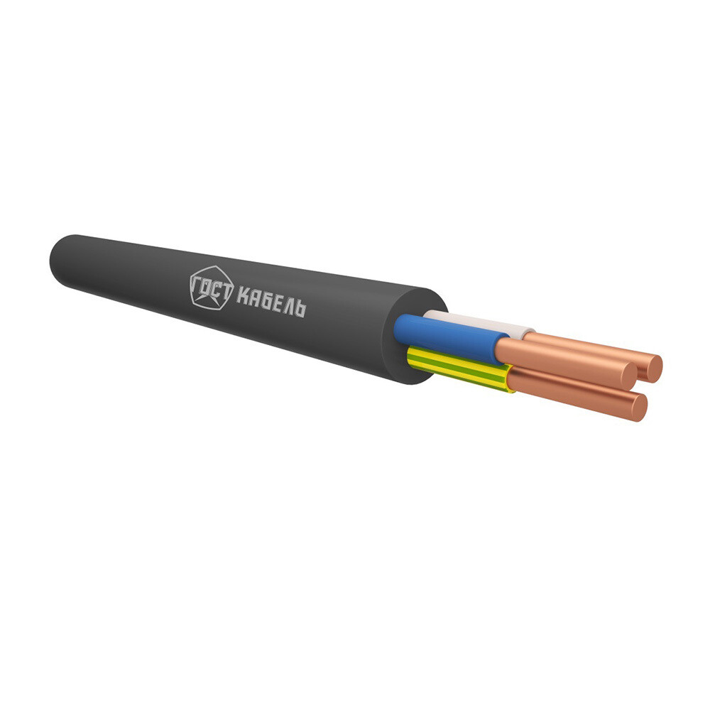 Кабель с медными жилами, с изоляцией и наружной оболочкой из ПВХ пластиката, не распространяющий горение по категории А с низким дымо- и газовыделением.