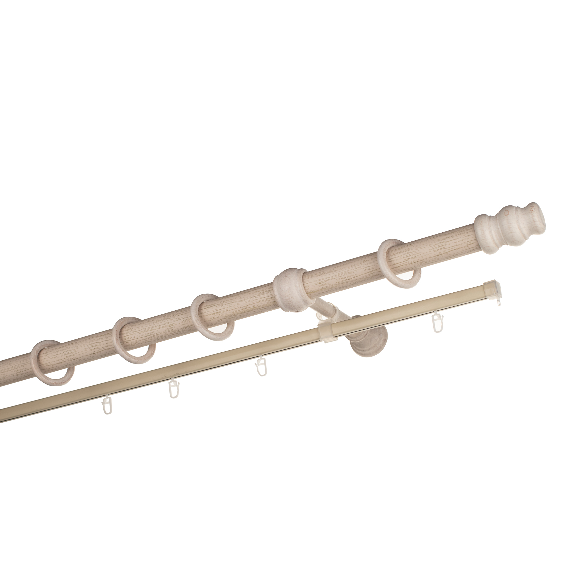 Карниз настенный деревянный двухрядный круглый 250 см d 28 мм беленый дуб