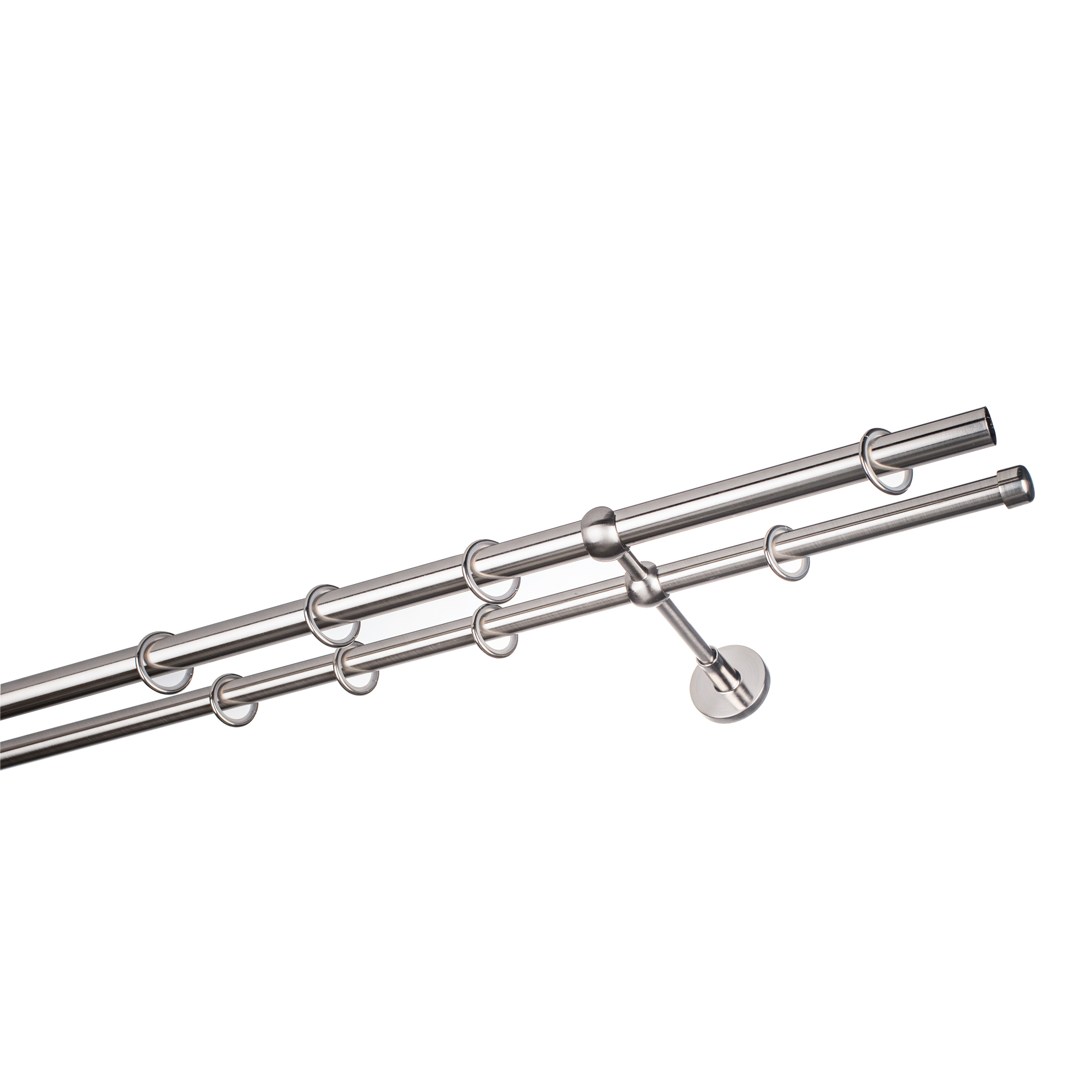 Карниз настенный металлический двухрядный круглый 160 см d20 мм серебро