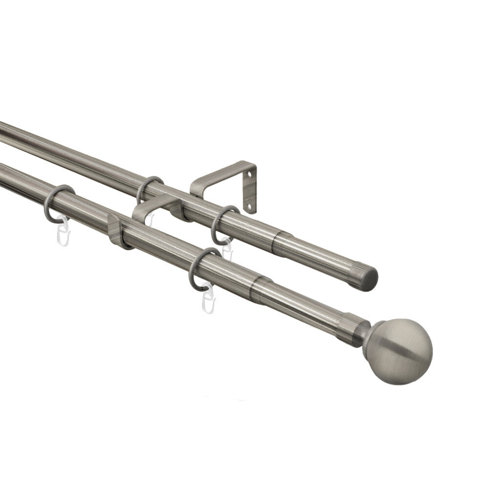 Карниз настенный металлический двухрядный раздвижной 160-300 см d16/19 мм хром матовый (151.210)