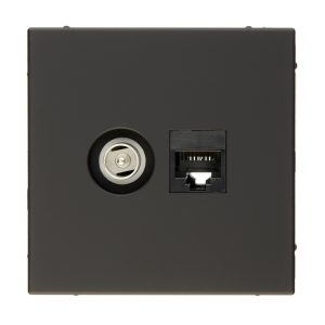 Первоначальная цена составляла 7725 ₽.7500 ₽Текущая цена: 7500 ₽.шт.Розетка телевизионная/ компьютерная Systeme Electric ArtGallery встраиваемая карбон TV/ RJ45 (GAL001089)