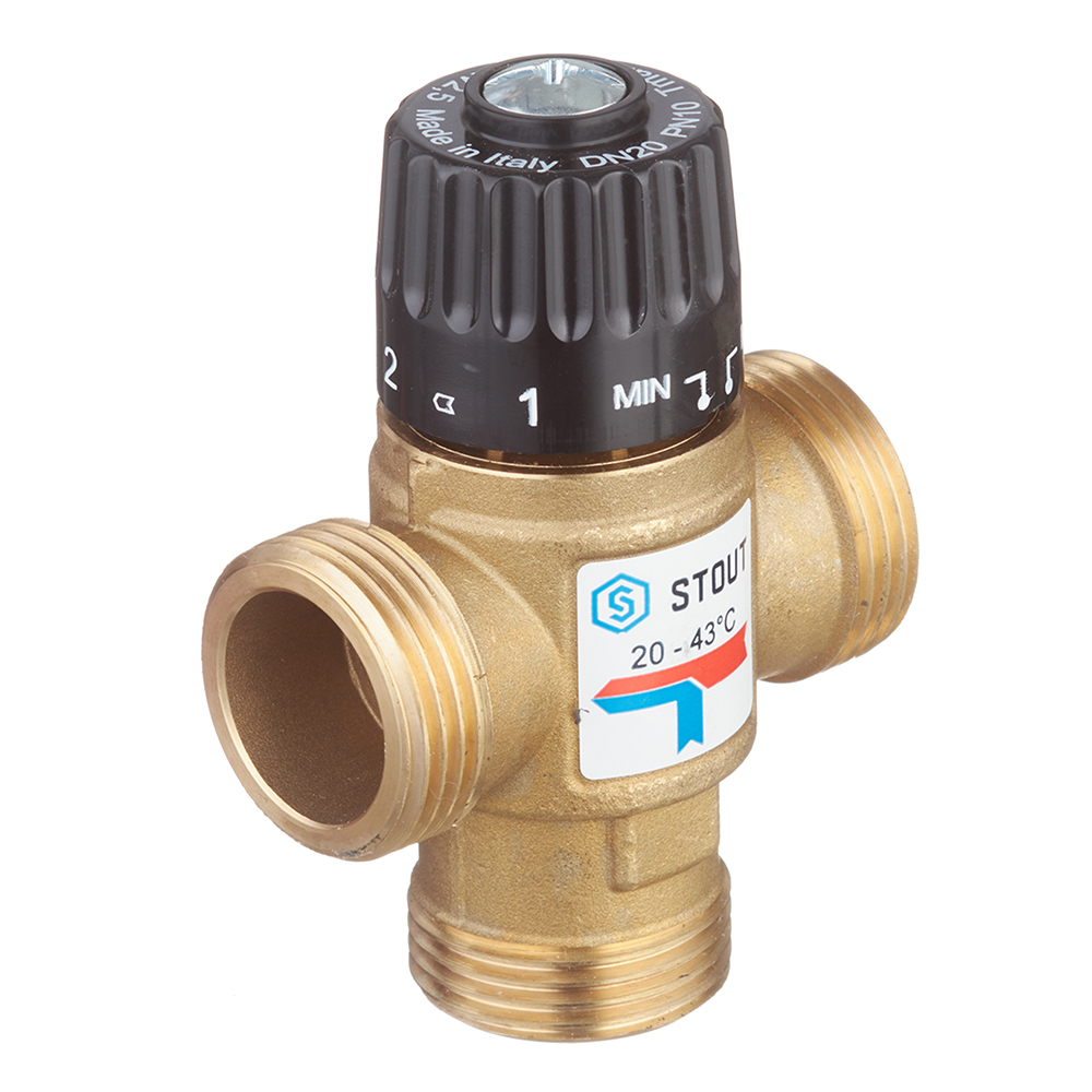 Клапан термостатический Stout подмешивающий 1 НР(ш) для отопления и ГВС 20-43 °С KVs 2,5 (SVM-0120-254325)