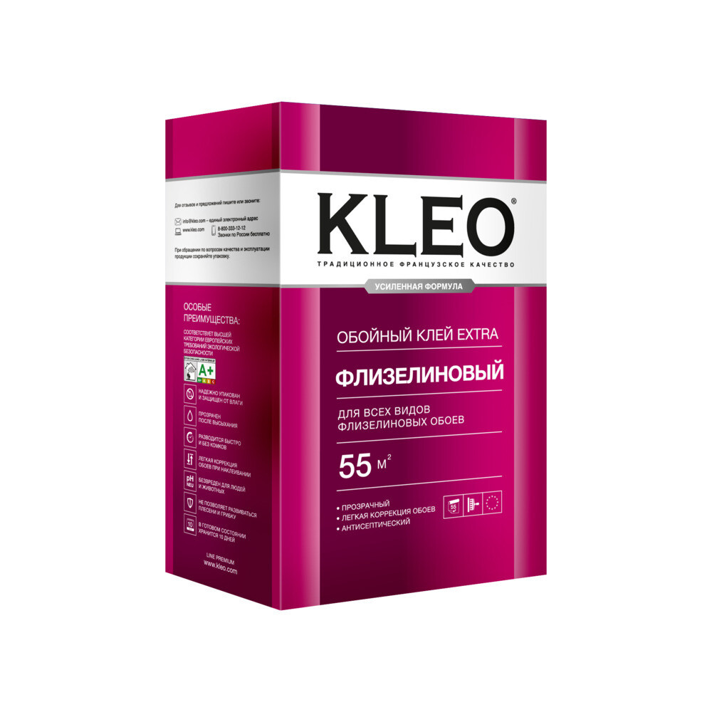 Клей KLEO EXTRA 55 предназначен для всех видов флизелиновых обоев, виниловых обоев на флизелиновой основе и малярного флизелина. Обладает усиленной формулой состава, изготовлен на основе модифицированного крахмала и противогрибковых добавок. Получаемый раствор обойного клея не содержит посторонних включений, а также мела или извести.