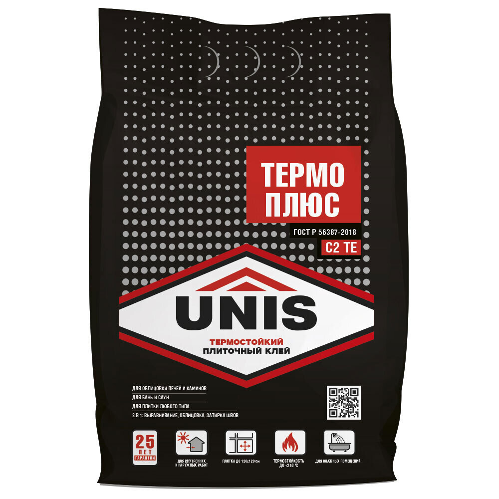 Клей для плитки и керамогранита Unis Термоплюс термостойкий серый класс C2 TE 5 кг