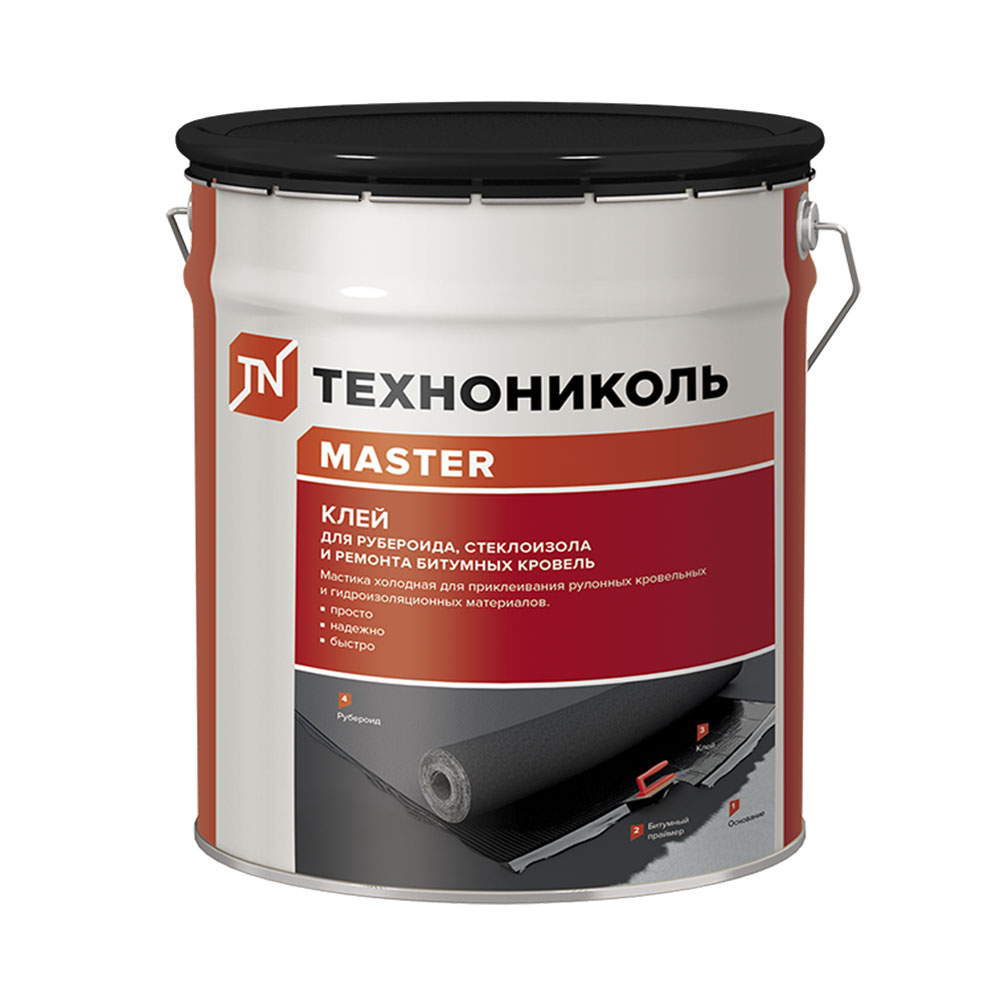 Клей для рубероида представляет собой многокомпонентную однородную массу, состоящую из битума, наполнителя, растворителя и технологических добавок. Предназначен специально для приклеивания типов рубероида РКП, РПП, РКК, а также рулонных материалов марок Стеклоизола с защитным покрытием нижнего слоя из песка (пленочное покрытие не допускается) к бетонным, цементно-песчаным и другим поверхностям. Так же клей применяется для склеивания нахлестов данных рулонных материалов.