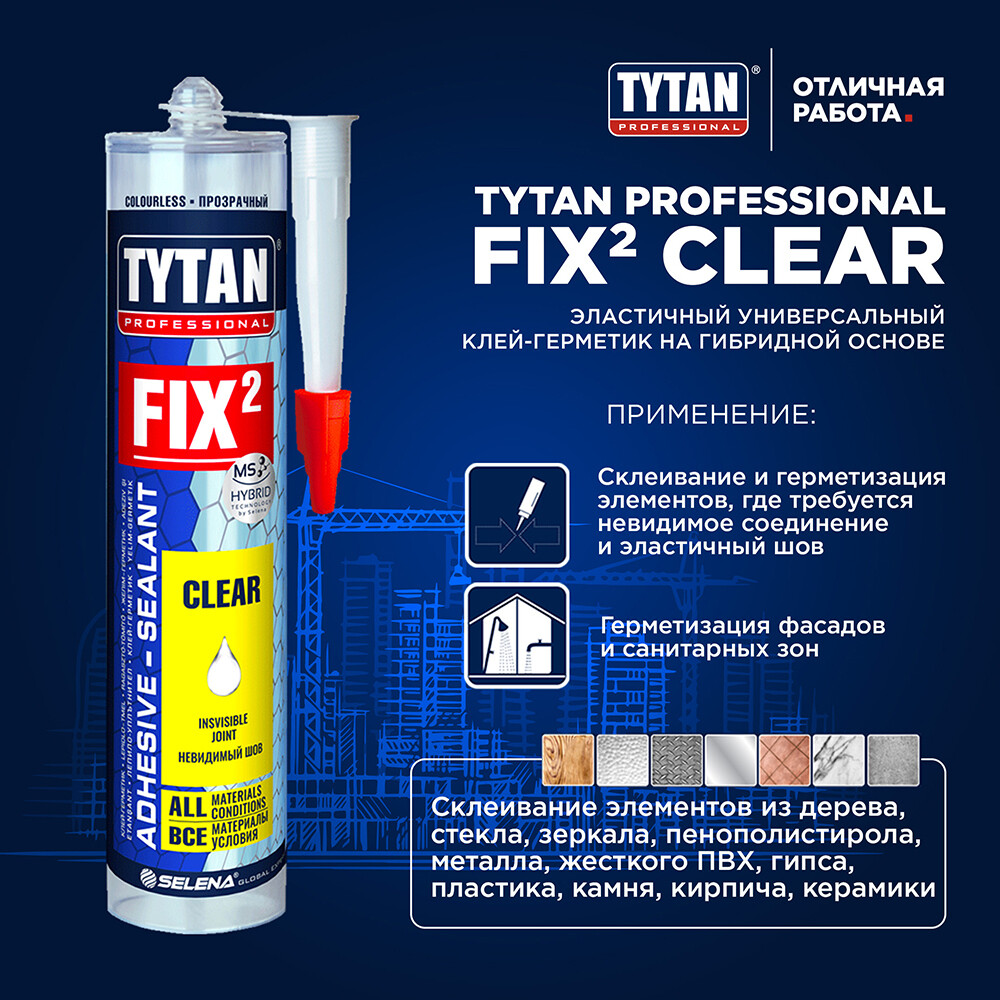 Однокомпонентный полностью прозрачный гибридный клей-герметик на основе MS-полимера, не содержит фталатов. 2 в 1: клеит и герметизирует. Это универсальный продукт с широким спектром применения. Используется для склеивания элементов, где требуется невидимое соединение.