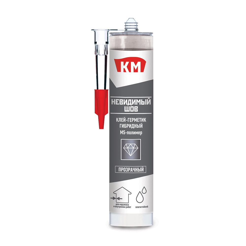 Главная / Каталог / Финишная отделка / Клей, жидкие гвозди / Жидкие гвозди / Клей монтажный гибридный КМ Невидимый шов прозрачный 280 мл