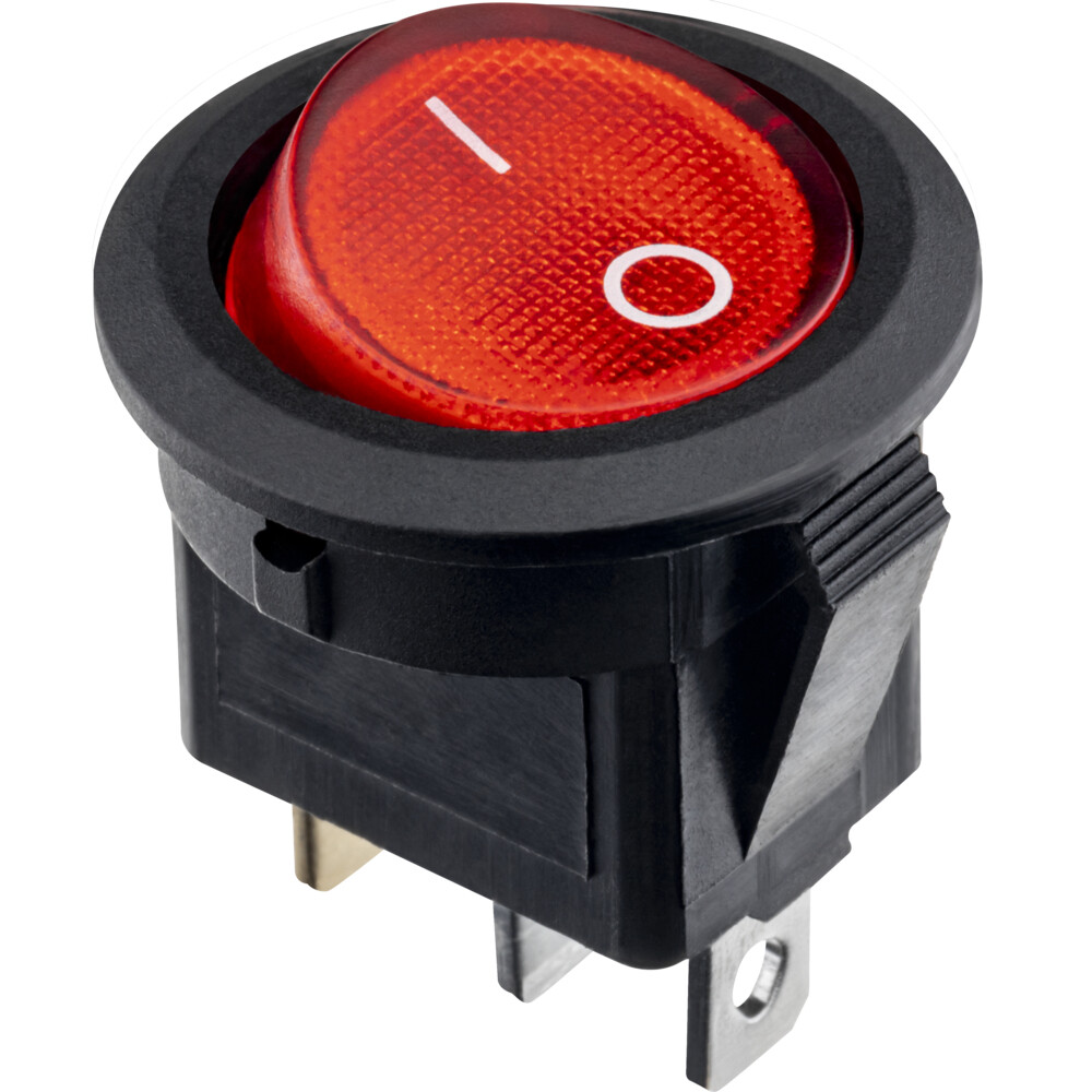 Выключатель клавишный On-Off красный с подсветкой предназначен для коммутации электрических цепей переменного тока напряжением до 250В.