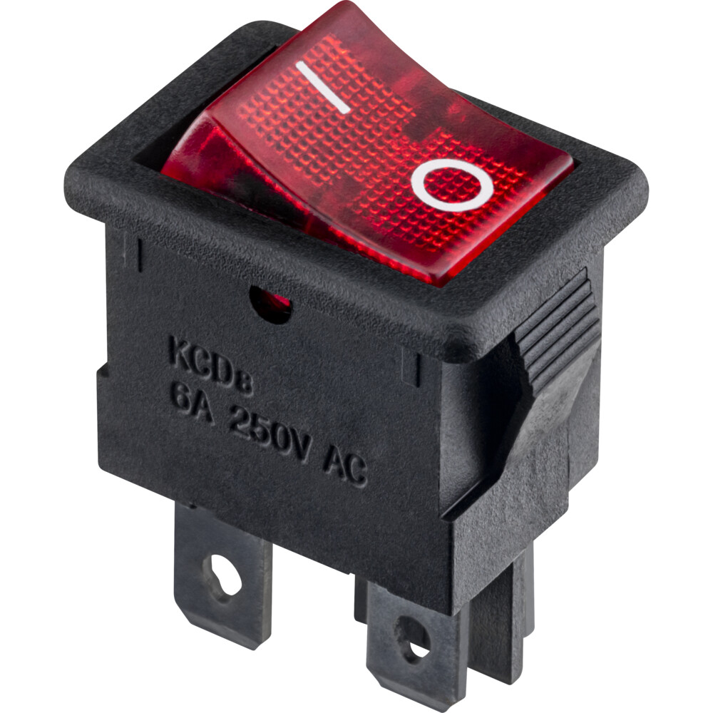 Выключатель клавишный On-Off красный с подсветкой предназначен для коммутации электрических цепей переменного тока напряжением до 250В.