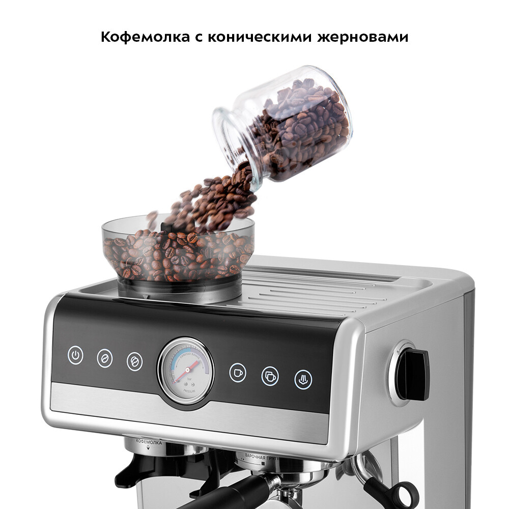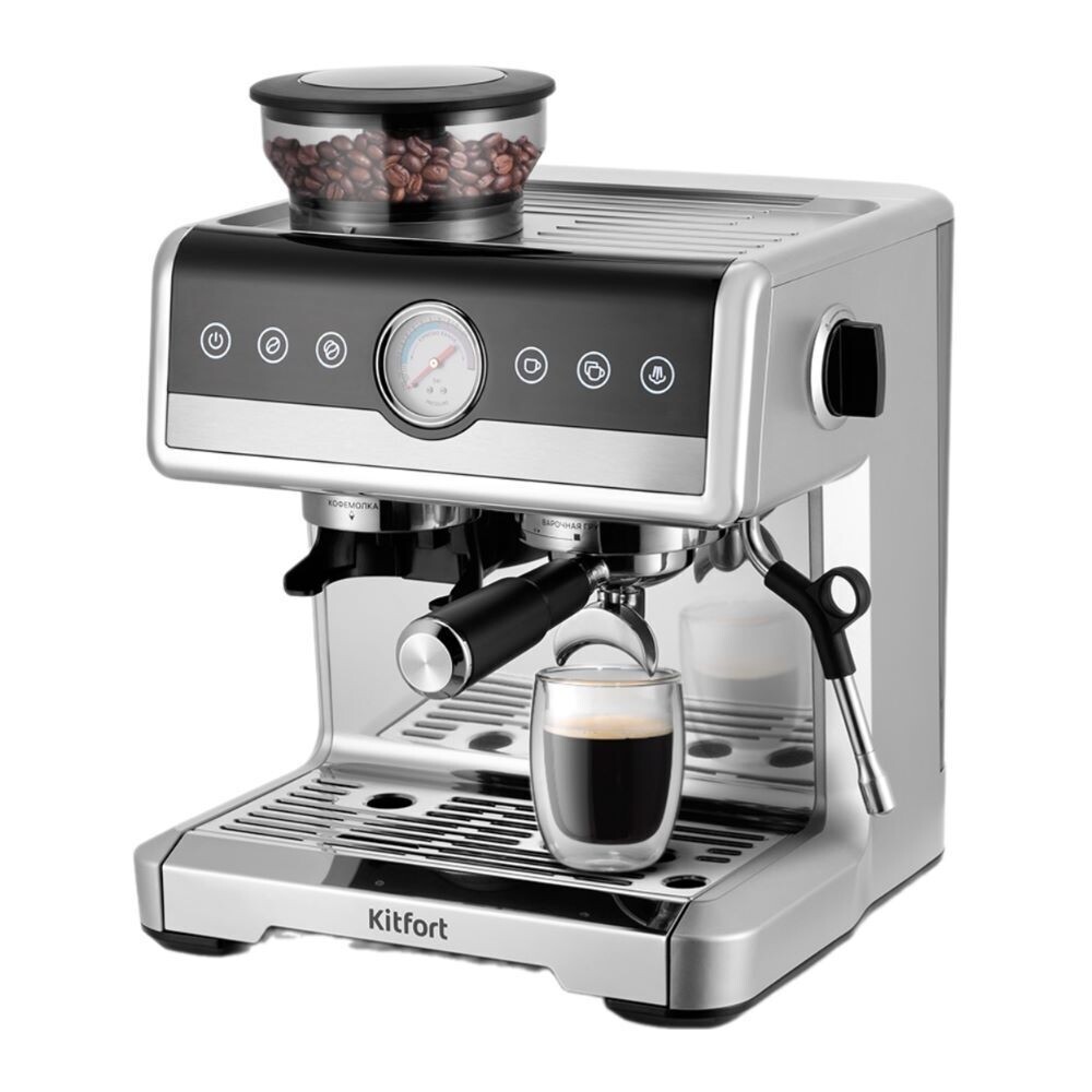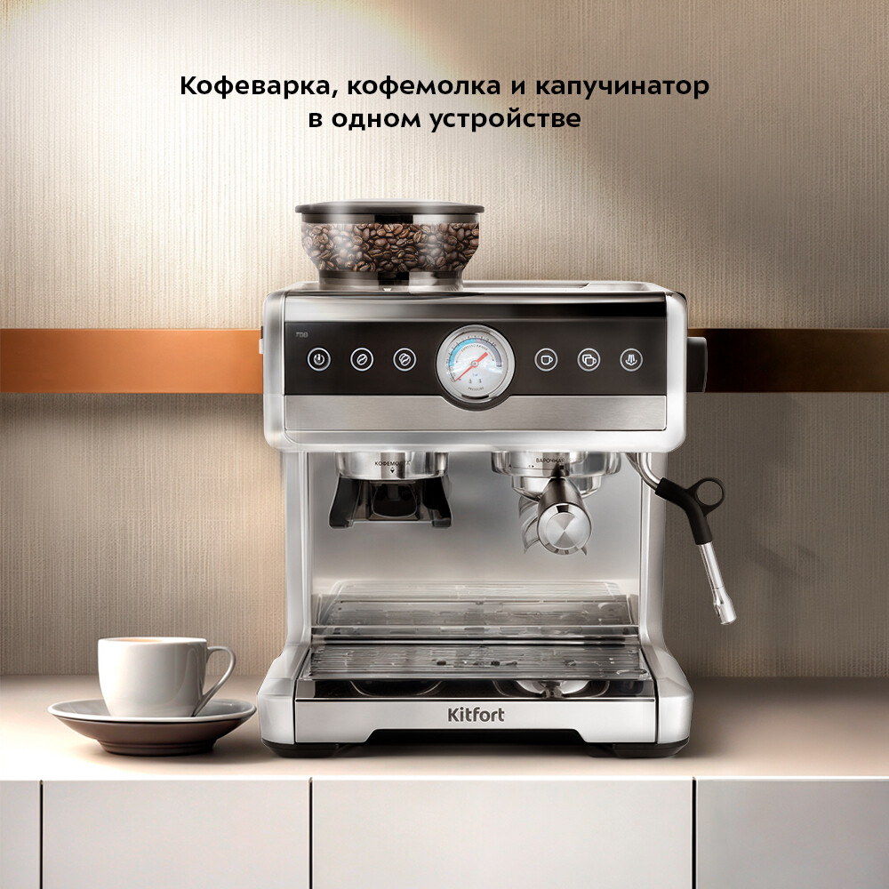 Кофейная станция рожковая Kitfort КТ-7413 серебро